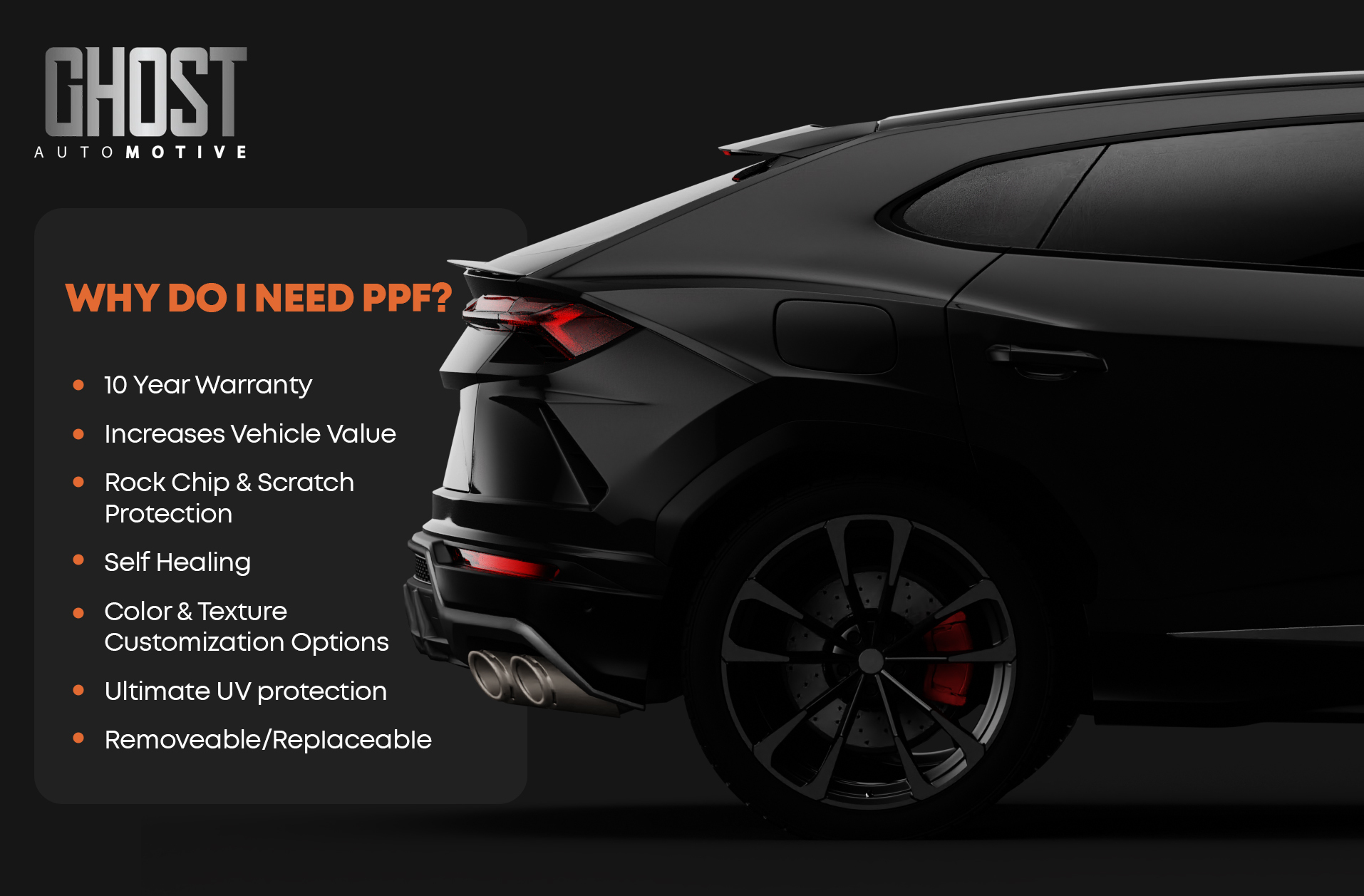 At Ghost Automotive, we understand the importance of keeping your car looking its best. That’s why we offer the best paint protection film for cars in Utah. Our state-of-the-art film is designed to protect your vehicle from scratches, chips, and other forms of damage. When it comes to preserving and protecting your vehicle’s exterior, there’s no better option than Paint Protection Film (PPF), also known as Clear Bra.